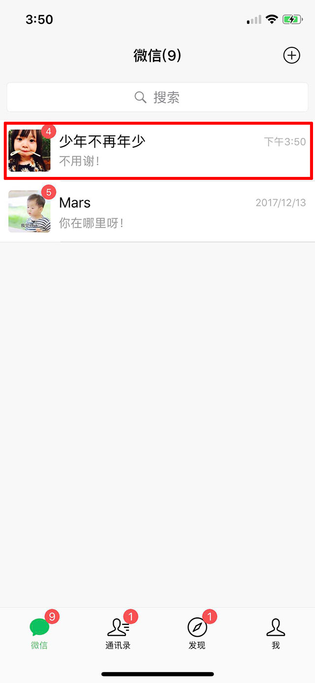 5.添加后再微信首页就可以显示好友聊天记录了。