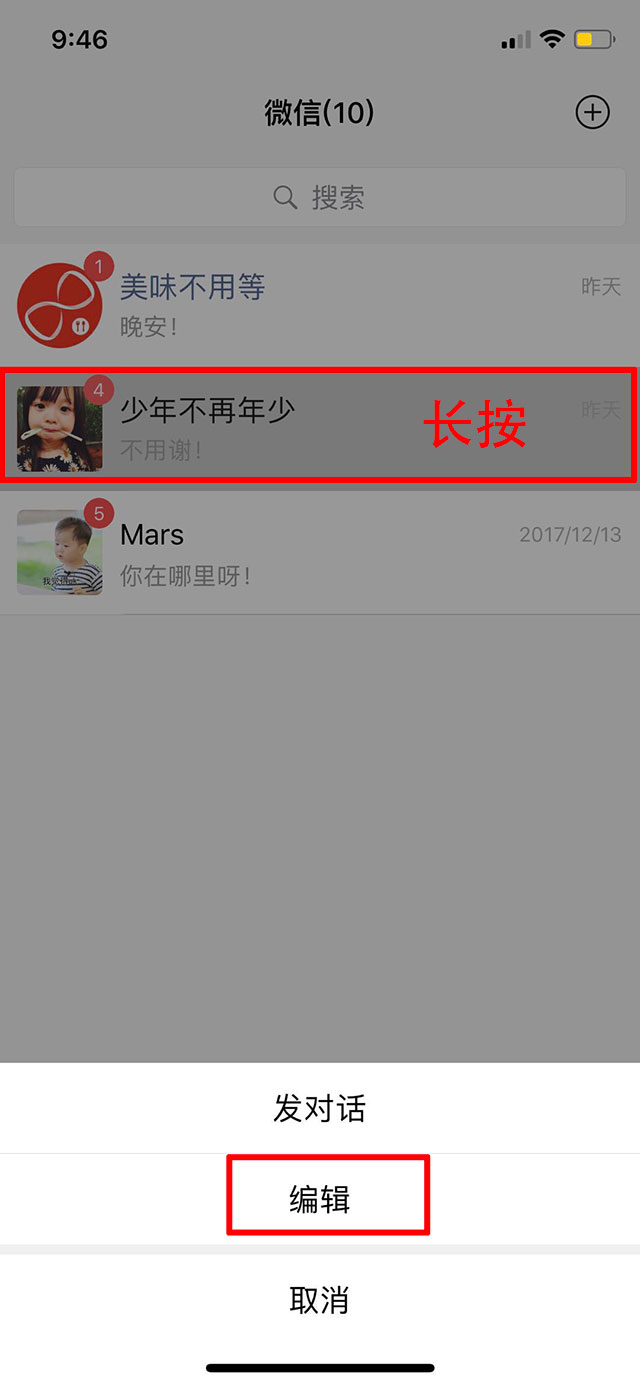 6.如果想编辑该好友聊天记录,可以长按该记录,选择编辑