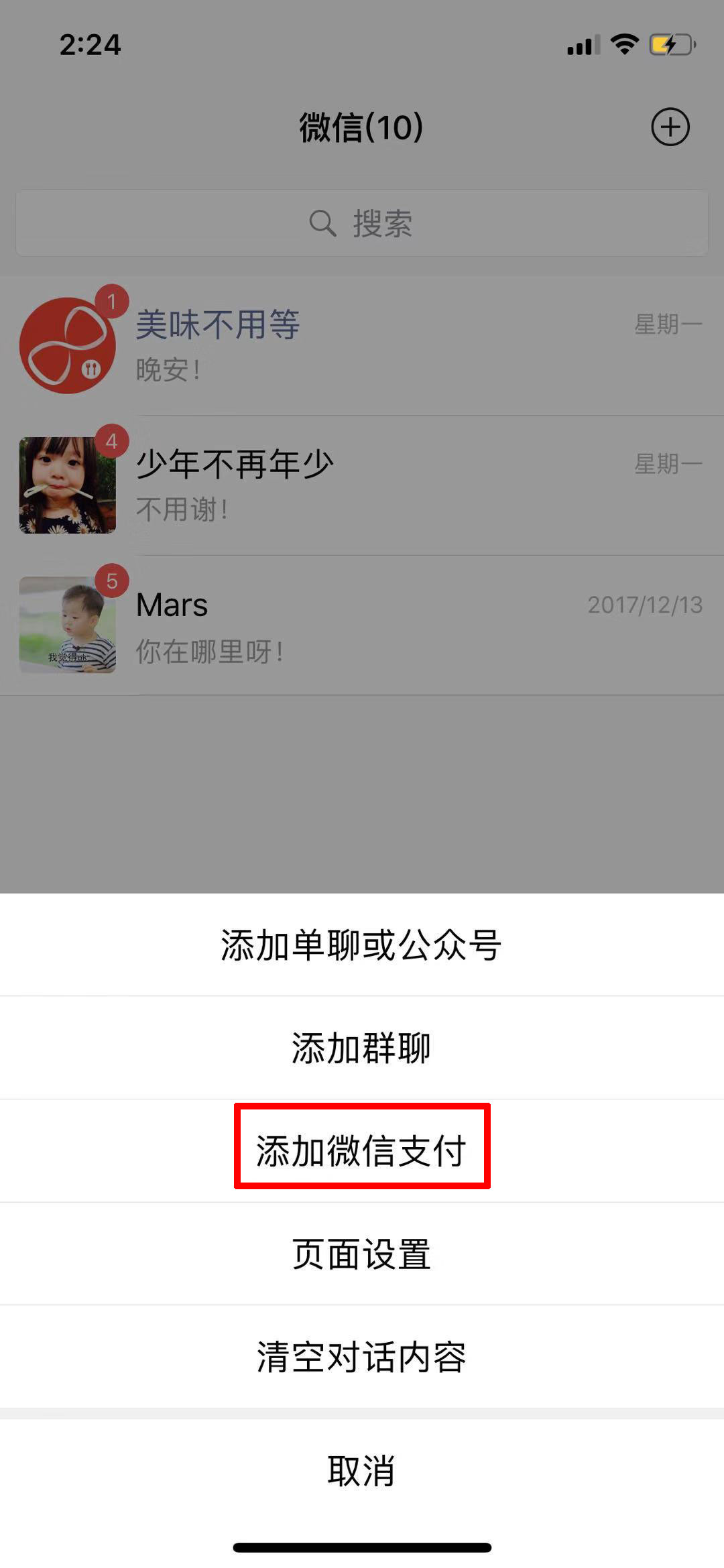 3.添加后在微信首页就可以看到微信支付了