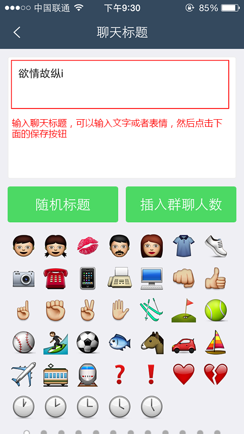 输入聊天标题,可以输入文字或者表情,然后点击下面的保存按钮