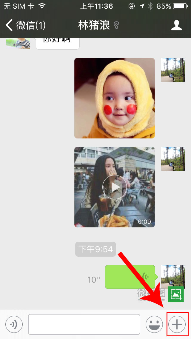 1.在聊天页面右下角点击“+”按钮